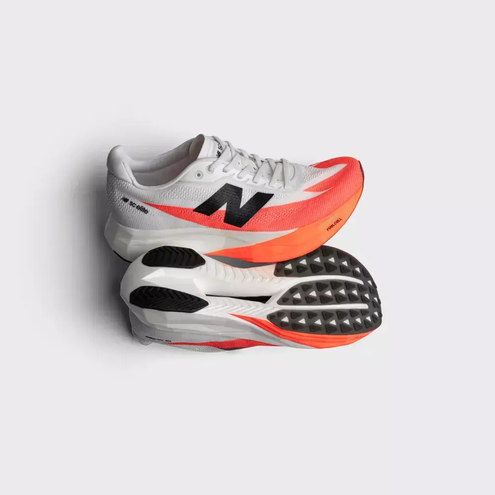 - Anos de pesquisa resultaram no New Balance SuperComp Elite V5, equipado com uma entressola FuelCell feita 100% em espuma PEBA;